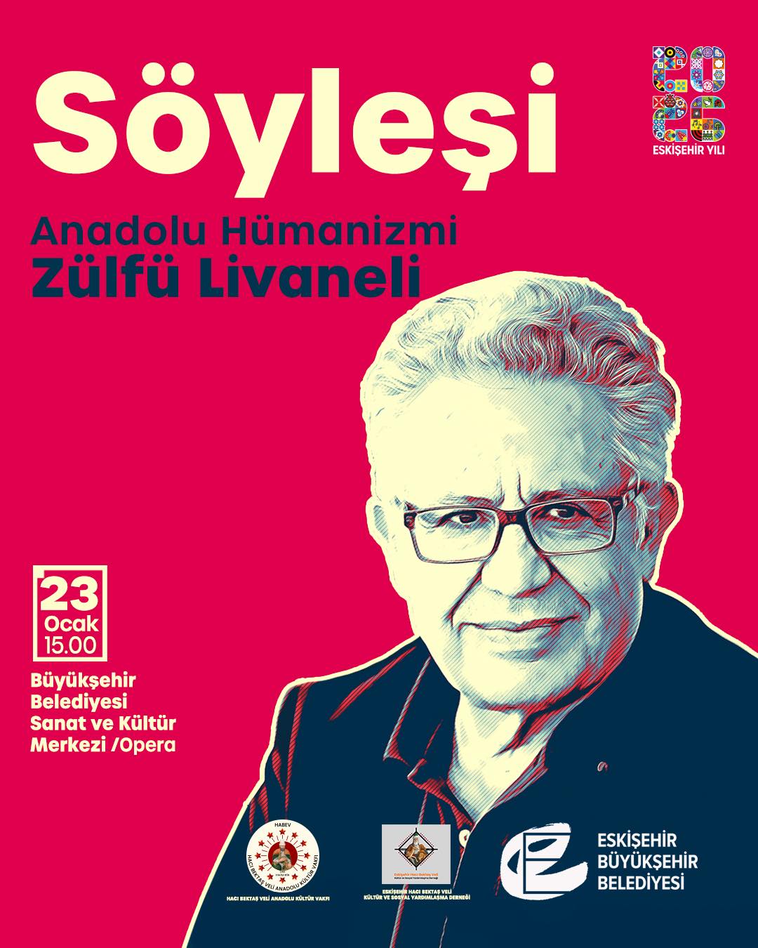 Edebiyatın ve müziğin efsane ismi Zülfü Livaneli’yle ‘Anadolu Hümanizmi’ başlıklı söyleşi için Eskişehir’e geliyor.