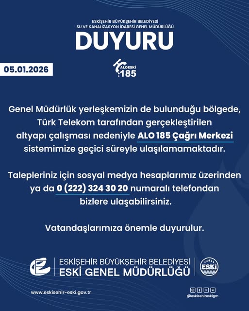 ESKİ; 185 DEN DEĞİL, SOSYAL MEDYA VEYA 3243020 NOLU TEL’DEN ULAŞIN