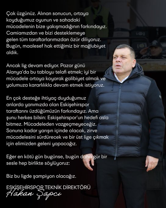ESKİŞEHİRSPOR TEKNİK PATRONU ŞAPÇI; ÖZÜR DİLİYORUZ